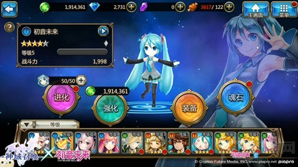 此次联动,不仅仅初音未来降临游戏之中,还有 镜音铃、镜音连、巡音流歌也将登场,同时全新联动角色“女武神未来”也将首次亮相。装扮成女武神的初音未来,将飞往世界每个角落,以她优美的歌声给大家带来幸福。