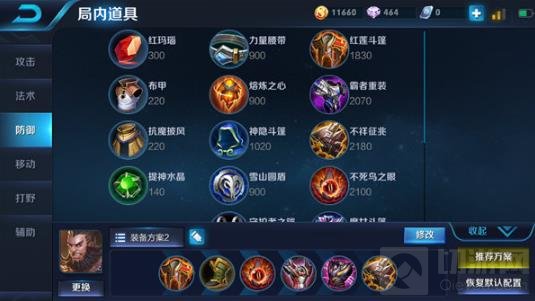由于程咬金被动的特性,不需要出攻击装也有一定的输出能力,所以这里选择出全防御装。由于程咬金一般作为边路英雄发育,那么大部分情况下面对的是物理系英雄,而红莲斗篷在前期就能给予程咬金不错的坦度,且红莲斗篷的被动也能加强程咬金清理兵线的能力,对程咬金的发育是非常有利的。
