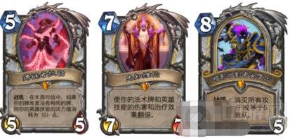 虽然术士形态丰富,但是多数都是铺场,用场面输出,爆发能力的话只剩偷鸡术了,火车王+力量代价+力量代价+无面+2个暗色炸弹,这里费用已经达到16费,但是对于手牌型术士来说,一个大帝减费到这里面的6张卡还是办得到的,所以最高斩杀情况就是这个组合, (6+4+4)*2+3+3=34,当然了你要说还可以减费一个血法师,强行再提高2点暗色炸弹的伤害也可以,不过这2点对于排名并没有影响,依然稳坐第八。