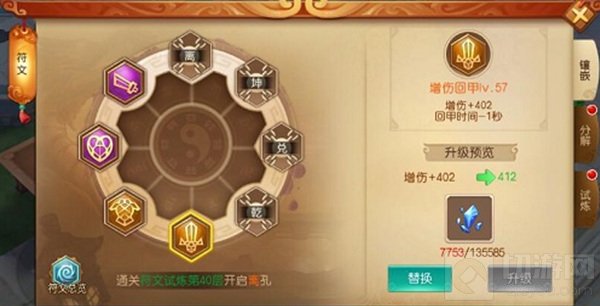 符文的获取途径也非常的简单,不需要钻石抽取,只需要通过符文试炼就可以获得对应的符文哦,而且达到试炼通关到对应的层数,还可以额外解锁其他属性品质的符文类型~同时,对应符文镶嵌的槽孔也会随着少侠调整层数的提而增加可镶嵌的槽孔~