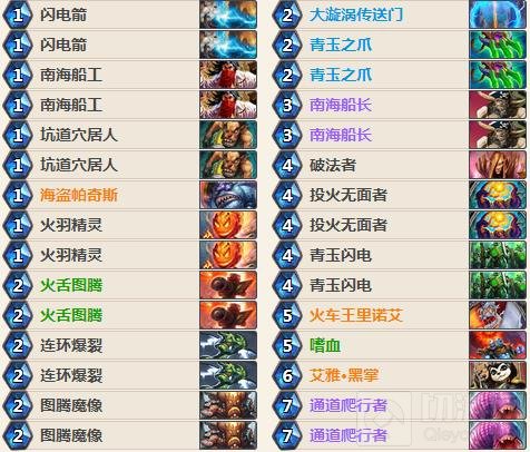 1.熔岩爆裂:大多数版本的青海萨带了这张卡,但我觉得过载2有点卡节奏。虽然跟坑道穴居人配合很不错,但如果用于解场的话就很亏。当然绝大多数时候是用于斩杀的,这跟带火车王里诺艾的目的一样。
