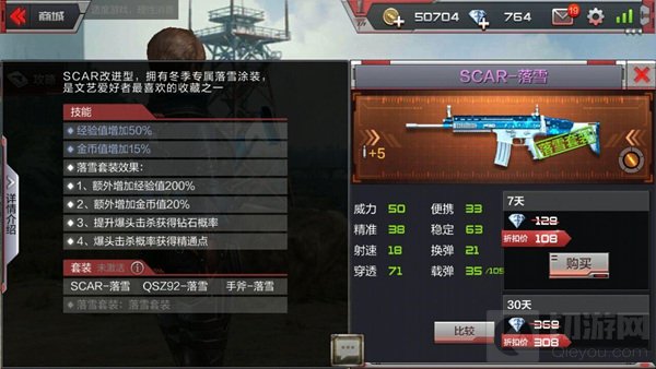 以下是落雪的属性,看完有没有觉得提升爆头+钻石几率升高这个属性很棒?还不快入手?