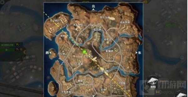 航线从下方飞过,跳伞朝着上方的公路位置飞,在空中即可观察地面是否有交通工具,如果有的话可以直接盘旋过去,顺利上车。一旦周围没有,可以在附近小城区简单搜寻装备,然后前往麒麟镇,争取将从麒麟镇中走出的老哥击倒。