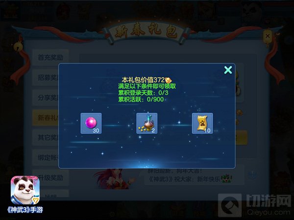 值农历新年即将来临之际,《神武3》手游2018新春礼包惊喜曝光,2月2日与广大玩家正式见面。缤纷好礼、超值道具,助你快乐神武之行!本次新春礼包分为三种,2月2日至4月13日24:00,所有30级以上的玩家满足登录天数和活跃即可领取免费春节礼包,同时还有两个超值特惠礼包供大家购买。