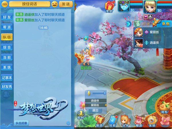 《梦想世界3D》组队玩法花样众多,结婚收徒社交互动应有尽有,2018全新队伍即时语音打破社交障碍,让各位侠士想说的话不再延迟!即日起,只要在队伍中和队友一起加入即时语音频道,即可开启自动群聊模式,所有侠士再也不需要另行“按住讲话”,想说的话瞬间传递,想聊的梗一秒传达,这个冬天,《梦想世界3D》陪你畅聊冬日不停歇!