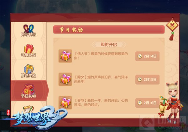 《梦想世界3D》新服“四海升平”火热开启,众多玩法等你新年大作战!冲榜礼包和冲级福利乐享不停,更有即将到来的众多节日奖励礼包惊喜封装等你来拆!情人节、除夕夜,还有新春福利马上揭晓,守岁看春晚,更不要忘了来《梦想世界3D》领取你的节日礼包哦!