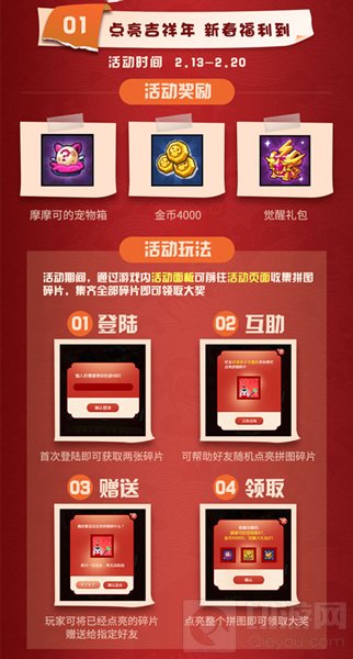 《野蛮人大作战》史上最豪华的活动奖励尽在其中,2月13日至2月20日期间,通过游戏内活动面板前往专属活动页面即可,通过呼唤好友点亮全部拼图即可领取大奖,同时每有一块拼图碎片被点亮都能获得一份小奖励!
