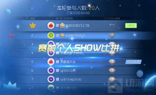 星际大奖赛准点开赛,每小时1场,进入游戏前会有个人show比拼,show值越高排名越前,可以得到更好的展示。
