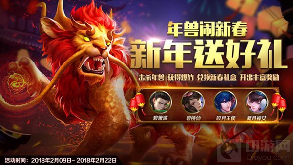 新年一定要嗨到爆!2月9日-2月22日将开启“年兽闹新春”活动,参与击杀年兽活动即可获得爆竹兑换新春礼盒,打开有机会获得大量神秘商店积分与情人节皮肤等丰富奖励!