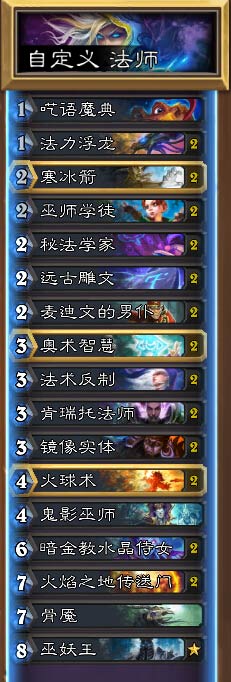 炉石传说标准模式卡组推荐:今天给大家安利一下奥秘法,思路简单操作难度低,按费拍、正常换,一言不合就抢脸!值得注意的是这套卡组中高威胁生物很多,但是过牌较少,整体厚度中等,所以对战中不要一味的解场,该打脸时就打脸!