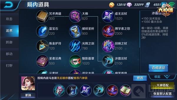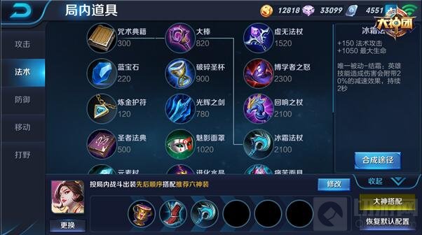 按照上述武则天的定位在出门装选择咒术典籍,可增加法术攻击,因武则天的群攻能力较强,一般选择中路对战,咒术典籍可以让武则天的技能1、2更有威力,通过不断释放技能来消耗敌人的血量。
