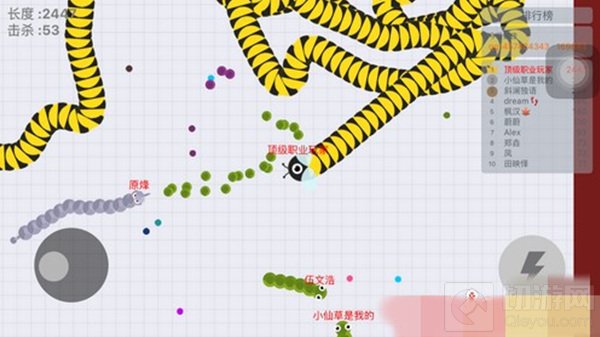 分数来到两三千分的水平,这条蛇就不要再像之前一样到处冒险,和其他蛇分着吃蛋了,这时候,蛇那盘虬卧龙的身体,已经可以霸占一方。
