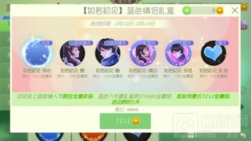 如若初见蓝色情侣礼盒,首发价格7212金蘑菇,算下来大概350块人民币的价格,稍微有一点的略贵,不过情人节送给女朋友,相信一定会让对方非常感动的。