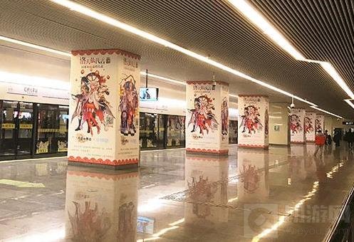 在上海的虹桥火车站地铁站中,从入口一眼看去,四周的包柱全都被《为谁而炼金》附上了特色鲜明的海报。虽然地铁广告早已经屡见不鲜,但是浓郁的二次元的风格相较于其他一些装饰却带来了更多的震撼!精制华丽的画风以及红红火火的元素,也时时刻刻吸引着不少来往的人们驻足观看。