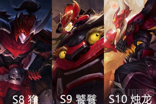 从S8开始,赛季专属皮肤完全转变风格,变成了五黑风格的无畏之灵系列了。这个系列都是取材于《山海经》的,以其中的神话故事为背景给英雄创造皮肤。但其实说白了,就是毫无联系的强行搭配。S8是白起的狰,S9是太乙真人的饕餮,S10是曹操的烛龙。这个系列的皮肤,都是以红色和黑色为主,所以看上去也还很炫酷。但是与前面的黄金皮肤相比较的话,在画质上还是有点差距的。