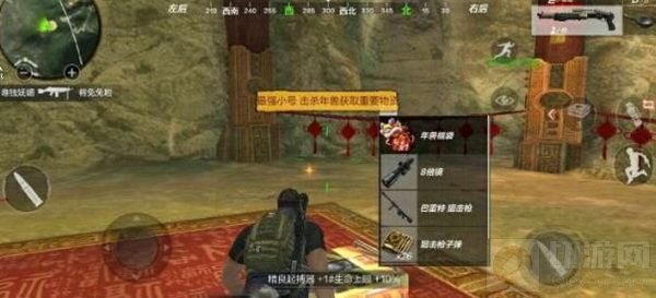 年兽是一只披着舞狮外皮的大狗狗,血条十分厚,而且大狗狗的伤害还特别高,虽然有一些招式,但是在小编的走位下一一化解,在这里提醒各位小伙伴们打的时候也要注意躲避伤害啦!还好这只大狗狗手下留情让我顺利拿到了年兽的祝福。这个祝福可是有神器的奖励,年兽福袋里面有巴雷特与八倍镜!简直赚到了!