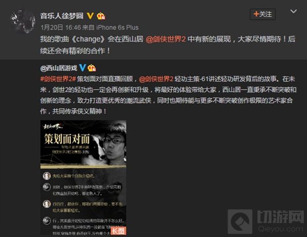 电音新秀徐梦圆微博发声,古风电音《change》将进入潮流武侠大世界《剑侠世界2》手游。作为中国新生代九零后音乐制作人,徐梦圆音乐粉丝超百万,国内电音人气超高。潮流武侠与古风电音的激情碰撞,火花一触即燃。展现新姿态,让武侠与电音一起炫动江湖!