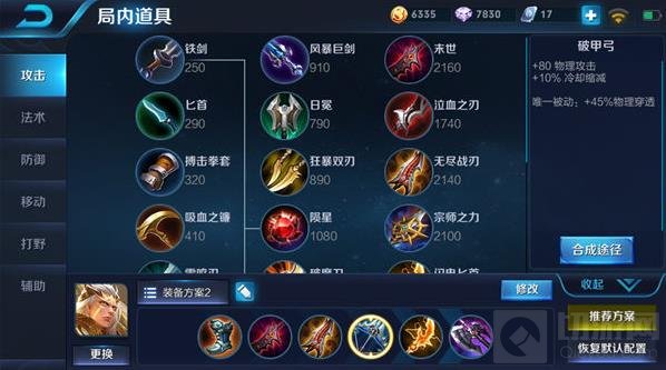 六神装:急速战靴,末世,无尽战刃,破甲弓,闪电匕首,暗影战斧