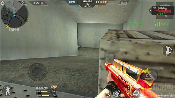 由于小道是一条仅仅可以供两个人同时并排前进的通道,因此喷子在这里能发挥出巨大的效果,运气好的话甚至可以连续带走多名敌人。举个例子,小伙伴是一名保卫者,开局后以最快的速度前进至小道口(图示位置)安静的蹲点。并且由于潜伏者有极大的几率从小道向A包点推进,故而可以通过倾听周围的动静判断潜伏者的详细方位。当潜伏者在前进至小道中心时就可以攻击了,原因为此时潜伏者周围是没有任何掩护的,一击即可轻松带走。