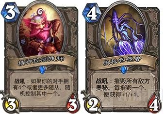 两张功能卡,卑劣的脏鼠和贪食软泥怪,脏鼠可以防很多战吼随从,当然如果你觉得没必要带也可以换成别的卡,贪食软泥怪可以针对骑士、奥秘法、魔块术,可以吃掉他们的武器,给你赢得一些调整的时间,这两张卡我还是挺喜欢的,但是你可以按照你自己的兴趣来,还可以带精神控制技师和奥秘吞噬者这样的卡,依据你所在天梯的环境而定,当然也可以带点费用稍微低一点的法术,不过这样的话AOE可能就不稳定了,看起来也还可以,不过真的打起来,就不知道怎么样了。