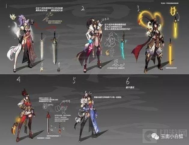在初选图中,总共是五不同风格的设计图,只有一个设计图会制作成新皮肤。很多玩家比较喜欢第一种风格,大小剑可以变形飞天狗,第二种和第五种也有不错的人气。第三种属于天神范,跟狗年皮肤类似,全身金光闪闪,而第四种则是简约而不简单。不知道小伙伴们看上了哪一款呢?