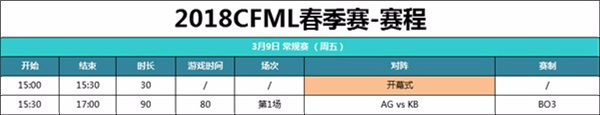 CFML2018春季职业联赛将于3月9日正式开赛,本届赛事将从3月9日进行至6月2日,具体的赛事比赛时间如下。