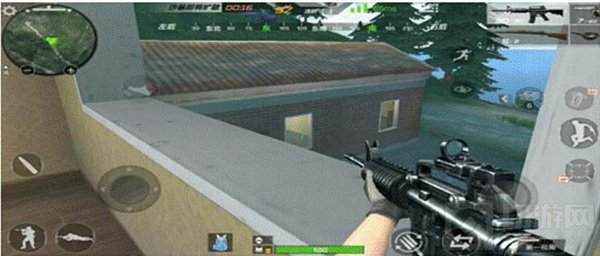 当自己在房屋内侦查时发现有敌人误打误撞来到了一楼的小房子时,如下图所示,我们可以选择套路一波敌人。先是通过这个窗口对敌人进行一波佯攻,敌人听到枪声后肯定会立刻寻找到我们的位置,然后会立刻躲在墙壁后面调整状态。这时,我们可以反其道而行之,从后面的窗口跳出去,快速从侧面迂回到一楼小房子的后方,趁敌人所有的注意力都在二楼的时候将其击倒,随后直接淘汰敌人。