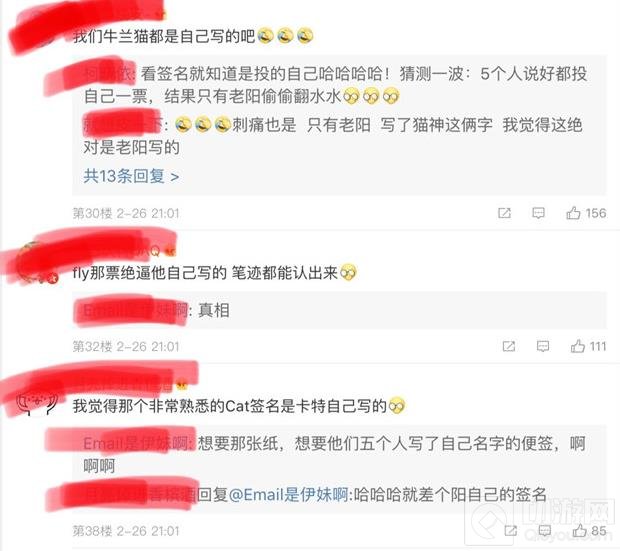 细心的网友开始研究投票笔迹,有网友认为飞牛,Alan,猫神都是都是自己投自己,这种说法得到了很多网友支持,并有网友猜测:5人说好投自己一票,结果老阳偷偷反水投了猫神。然后猫神就顺利的成为QGhappy幼儿园的队长。
