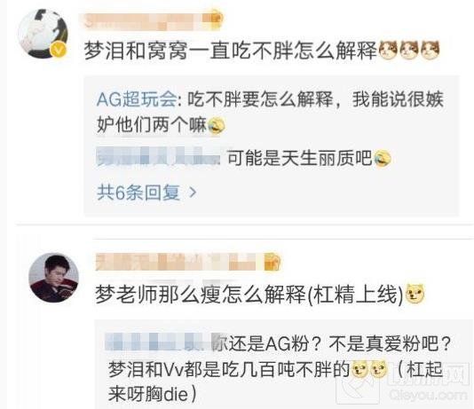 只是对于阿泰的体重,小妹想说各位猪苗就放心吧,天府之国大成都好吃的那么多,大家都懂哒~不过虽说猪苗们在担心阿泰长胖,我们QG的小姐姐们却在担心某人变瘦!没错,小妹说的就是刚刚转会来AG的黑大帅啦!