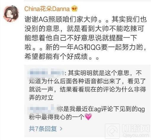 而看到博娘和Vv细心的解释和大家对大帅的照顾,我们可爱的QG小粉丝也是松了一口气,大帅在AG被照顾的很好,完全不用担心啦!