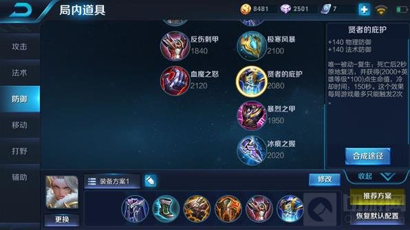 出装推荐:魔女斗篷+抵抗之靴+不祥征兆+红莲斗篷+反伤刺甲+贤者的庇护