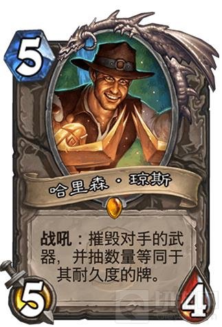 个人想法:不推荐哈里森。其实术士带武器的只有魔块术;打骑士的时候也不太可能用5费只是去吃一把小武器,更何况还增加对面神恩的过牌量(因此即使吃到斩棘刀也并不爆炸);打奥秘法的时候,对面六费的武器非常让节奏,在我们奶牌足够的情况下,拿回场面约等于直接获胜。