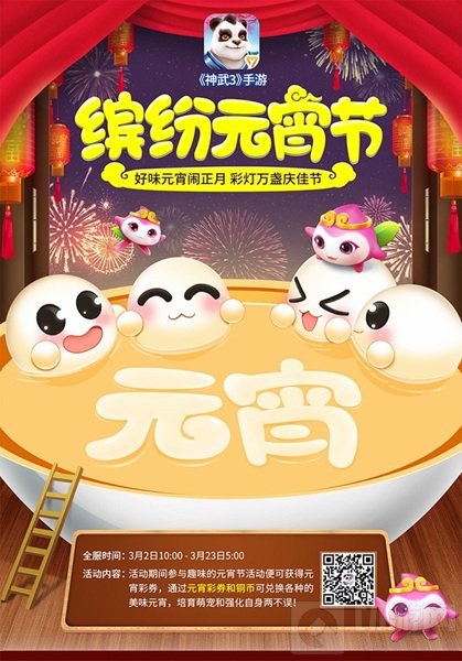 结伴出游赏花灯,感受热闹喜气的节日气氛;灯谜大会智力比拼,比一比谁的知识更渊博;和小伙伴一起组队迎战元宵精灵,赢取丰厚奖励;将新春祝福镌刻到彩灯之上,向全世界传递你的快乐喜悦。《神武3》手游元宵活动盛大开启,美味元宵等你来品尝。