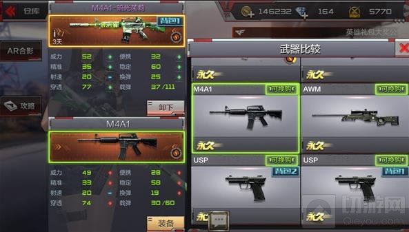 首先我们先来看看这把枪的与普通的M4A1有着哪些方面的提升,在上图中来看,首先在威力方面,这把枪相比于基础版本,如果命中上半身,单发子弹的伤害提高到了32点左右,不要小看这几点伤害的提升,我们都知道,M4A1基础版本的射速就能达到每秒12发左右,一就是说,琉光茉莉每秒的伤害就能比基础版本提高40到50点,在瞬息万变的战场上,这个伤害足以能够让我们快人一步消灭对手获得胜利。其次,这把强在穿透性上也有了一定程度的提升,针对穿有防具的敌人有着更高的杀伤性,而且在爆破等模式中,敌人常常或躲到木箱或者门后等掩体里,贸然进攻必然危险,这个时候优良的穿透性就很重要了。最后这把枪有着更轻的重量,携带他移动速度更快,带弹量也增加了7发。