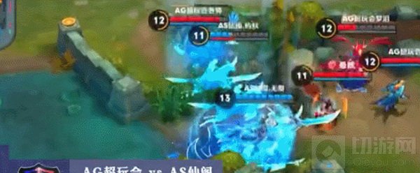 比赛进行至12分03秒,AS仙阁与AG超玩会在上路野区爆发团战,AS仙阁关羽及时大招切入战场,先利用被动技能冲锋击杀两人,再回头冲锋顶两人配合一技能重劈打出高额伤害,随后再回身劈出一刀。最终“踏雪无痕四刀关”助战队一换四拿下巨大优势。