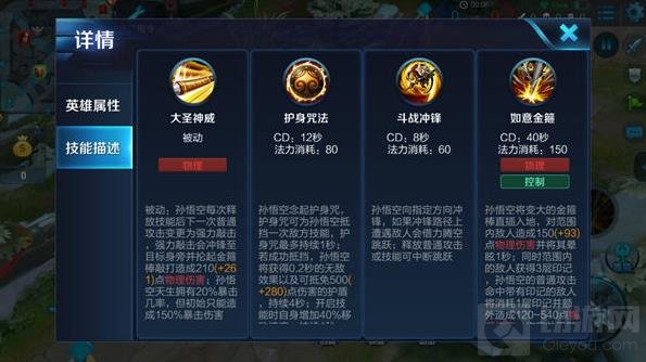 2、孙悟空只有二技能一个位移技能,因此机动性也不是很强,所以在选择攻击目标的时候尽量不要选择高机动性的英雄,否则很容易被对方逃掉,这样会使自己在战场上的作用大大削弱。
