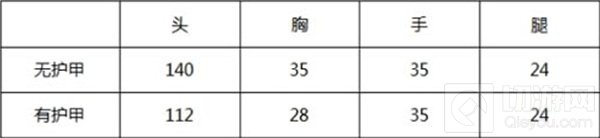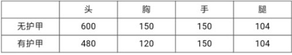 胸部伤害x4即为头部伤害,打中护甲的伤害须在此基础上另外x0.8 。