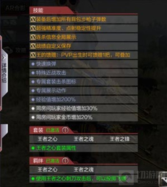 ◆王者之心套装属性:同时装备三件获得至尊王者边框