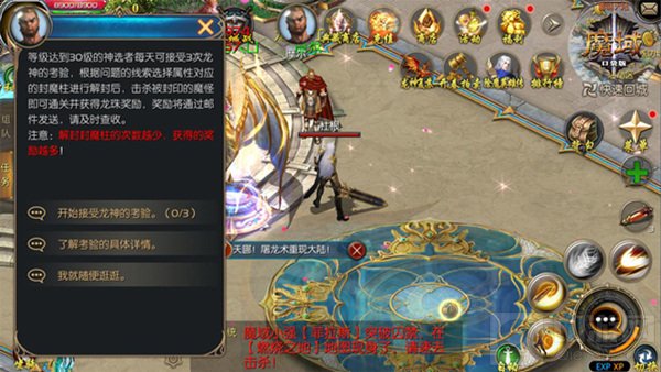 除了捣乱的鹿角兽外,龙神本尊也将对玩家进行进一步考验:在“龙神的考验”活动中,每位玩家将进入龙神考场进行答题,根据问题的线索选择属性对应的封魔柱进行解封,若解封正确,则击杀封印魔怪后可获得通关奖励;若解封错误,则会接受龙神的惩罚,你必须剿灭地图内的所有魔怪后方可继续进行答题。无畏的玩家就是要智勇双全,你准备好迎接龙神的挑战了吗?
