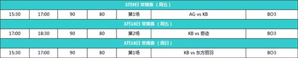 纵观KB在第一周期的比赛中,第一二场的比赛对KB而言有一定的压力,先后对阵上届冠军队伍以及强势新秀,若在这两场比赛中KB能够获得两场胜利,或者一胜一负,那么让KB能够有一定的积分优势,随后与东方丽羽的遭遇,KB或能收获比赛的胜利。