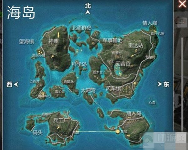 从山顶上来看!在海岛地图上陆地面积是非常少的!大多处的小镇房屋都被海水覆盖!让整片岛屿处于海洋之中,使战斗更新的丰富!这是一场智力与枪法的战斗!