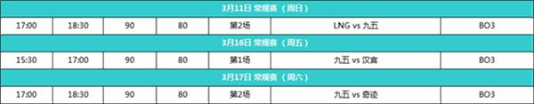九五战队的第一周期比赛分别将与LNG、汉宫以及奇迹对阵。LNG以及汉宫这两支队伍,九五在上赛季有所交手,其中九五分别战胜这两支队伍。不过新赛季中,两支队伍做出极大的变化,九五能否应对这是待考证的事情。根据九五的实力,在这两场比赛中,大胆猜想其最基本可以从两场比赛中分别获得一分积分。而奇迹与九五同样是从TGA赛场晋级至联赛,同为黑马队伍,两支队伍之间的碰撞或最为激烈。