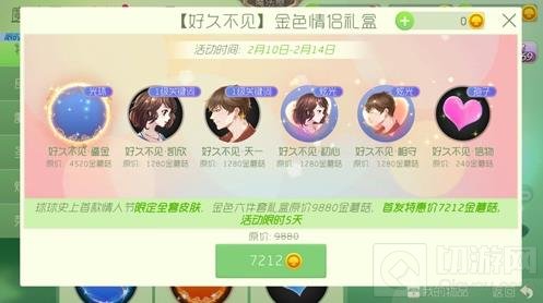 好久不见金色情侣礼盒,首发价格7212金蘑菇,算下来大概350块人民币的价格,稍微有一点的略贵,不过情人节送给女朋友,相信一定会让对方非常感动的。
