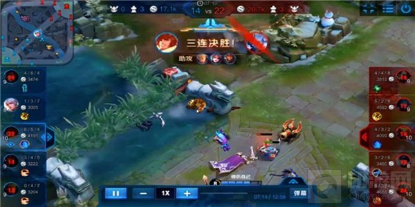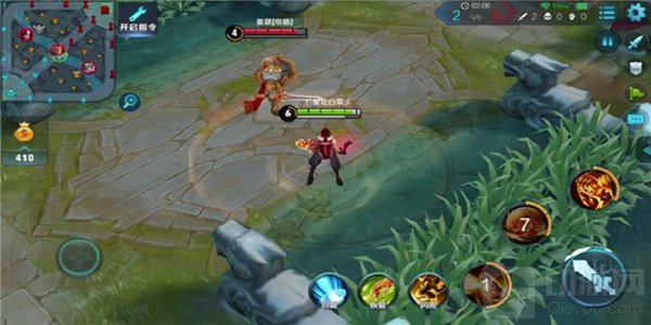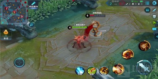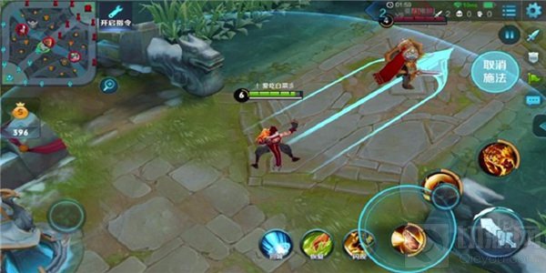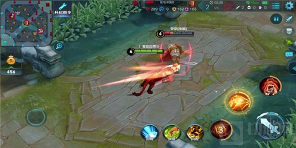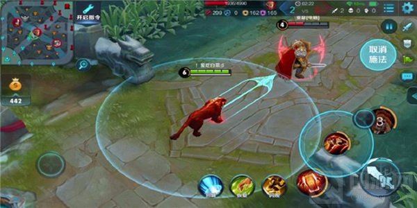 这个技能看上很复杂,实则非常有趣。此技能分两种情况,如果第一段冲刺没有遇到地形边缘,则此技能就是一个简单的突进技能。如果第一段冲刺碰到地形边缘,千万注意,这段冲刺时不能越过地形的,裴擒虎需要在短时间调整摇杆方向来进行第二段跳跃。如果你一直按着一个方向,第二段跳跃是可以跨越很多地形的。当然,你也可以在第一段技能释放触碰地形后,短时间内选择向任何方向跳跃,这就比较考验大家的反应速度和操作能力了。