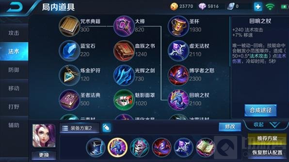 甄姬核心装备推荐:回响之杖、痛苦面具