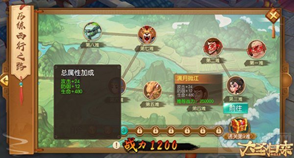 除此之外,《大圣归来棒指灵霄》每通关一个关卡,少侠们的战力都会有一定的提升,当通关到了一定的关卡数还可以获得对应的奖励,这些奖励会是历练途中的无限宝藏。