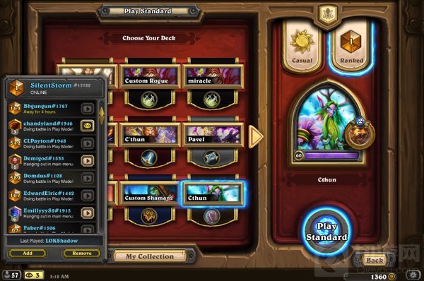 5月14日,美服选手SilentStorm使用一套克苏恩德完成登顶,这也是最近难得见到的克苏恩卡组取得天梯第一,看来还是德鲁伊最适合克苏恩。