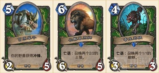 由于卡组中带上了犀牛,所以多利用亡语生成野兽的随从进行交换解场,可以很好的增强场面的优势。
