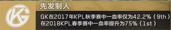 在GK和AG比赛之前,程咬金出场了8次,百分百胜率,以至于在最近的几场比赛中,各个战队要么会首BAN程咬金,要么会首抢程咬金,很少会主动放给对面。