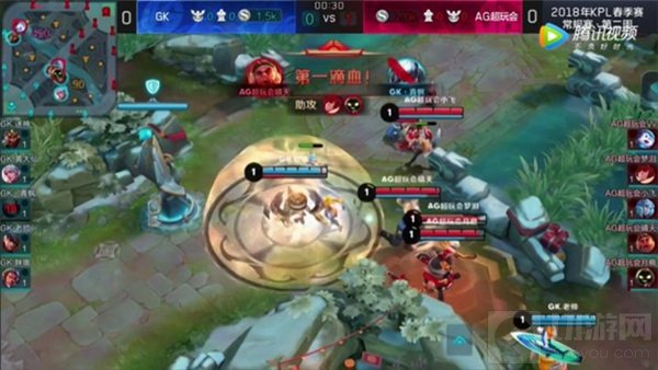 说实话,第一局GK被零封有点出乎我的意料,可能GK也没料到AG开局会打的这么凶,也许是出于求稳打法,GK开局并没有想着在河道做视野,而是把注意力都用在了自家红BUFF野区,这也使得没有视野支持的GK中单青枫,在开局30秒的时候,就被AG在中路3人抓住,轻松的交掉了一血,在中路少一人的情况下,AG顺势强行入侵野区,1级的黄大仙百里守约,根本没有任何反应的机会,也被AG带走人头,AG超玩会开启梦幻开局。